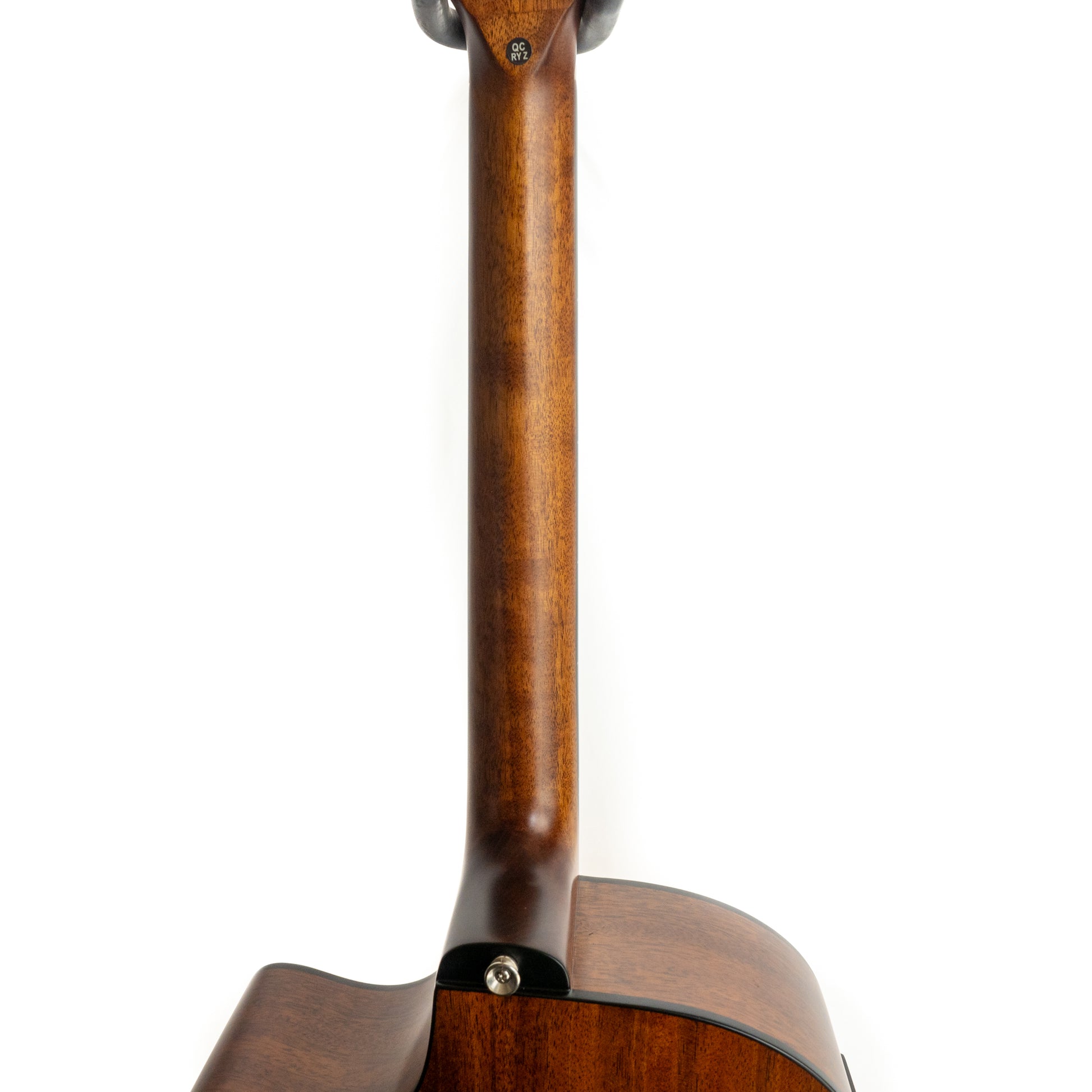 This is a great guitar, very comfortable to play with the curved arm rest.  It has a very nice tone, is easy to play and has a great pickup system.  As a refurbished instrument, it is stamped "used" to indicate that no longer carries factory warranty.  It looks virtually new, but has a light scuff on the heal that can be seen at some angles.