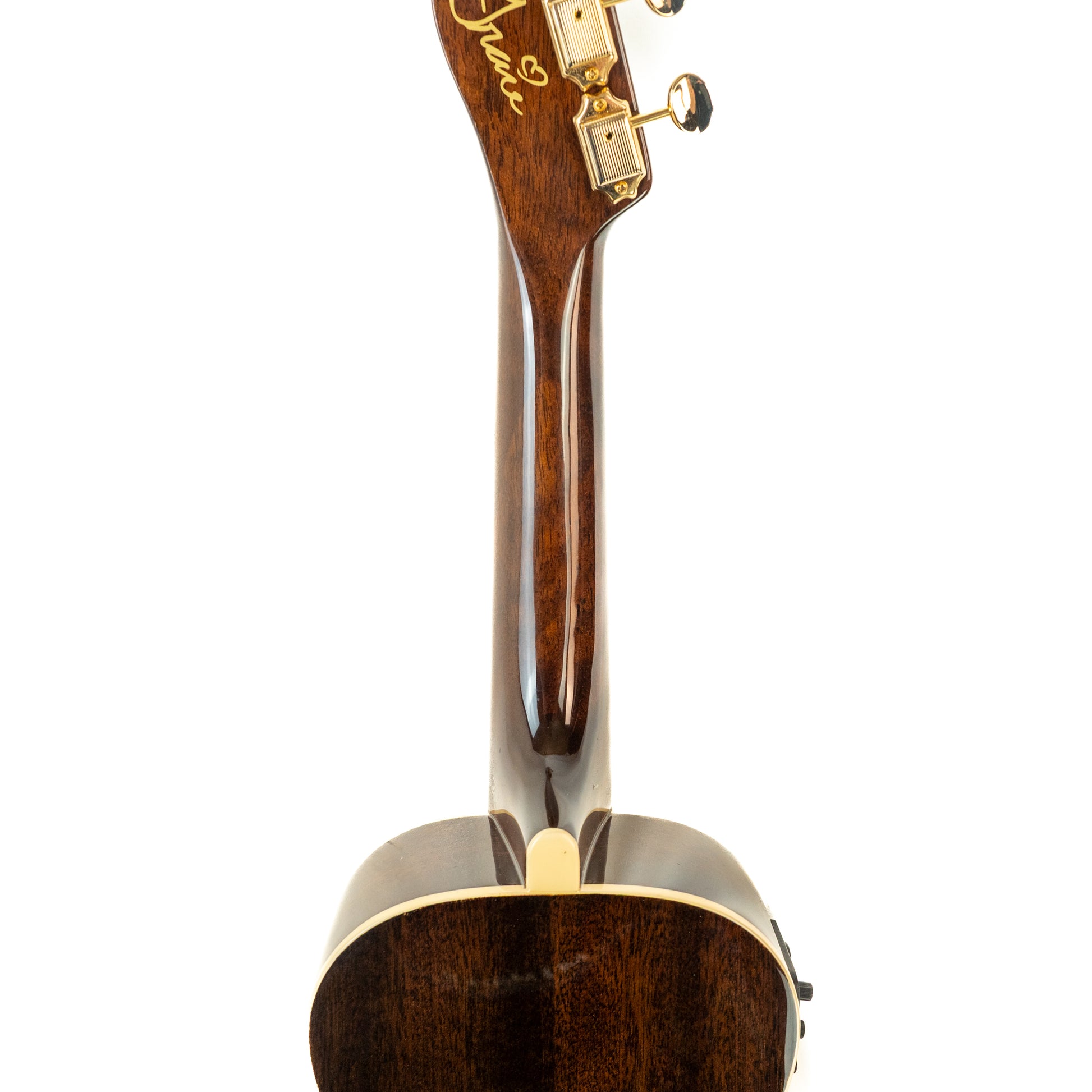 Blazing her own musical trail, songstress Grace VanderWaal and her ukulele burst into the music scene with her 2016 debut EP, Perfectly Imperfect. With its comfortable concert-sized body, enticing sound and stage-ready features, including a Fishman® Kula preamp system, the Grace VanderWaal Signature Ukulele is the perfect partner for her music. Reflecting Grace™'s 'œBoho Chic' style, this ukulele features a luxurious Dark Walnut gloss finish, gold sparkle rosette, gold hardware, custom floral soundhole label and Grace™'s distinctive heart signature adorning the back of the headstock.