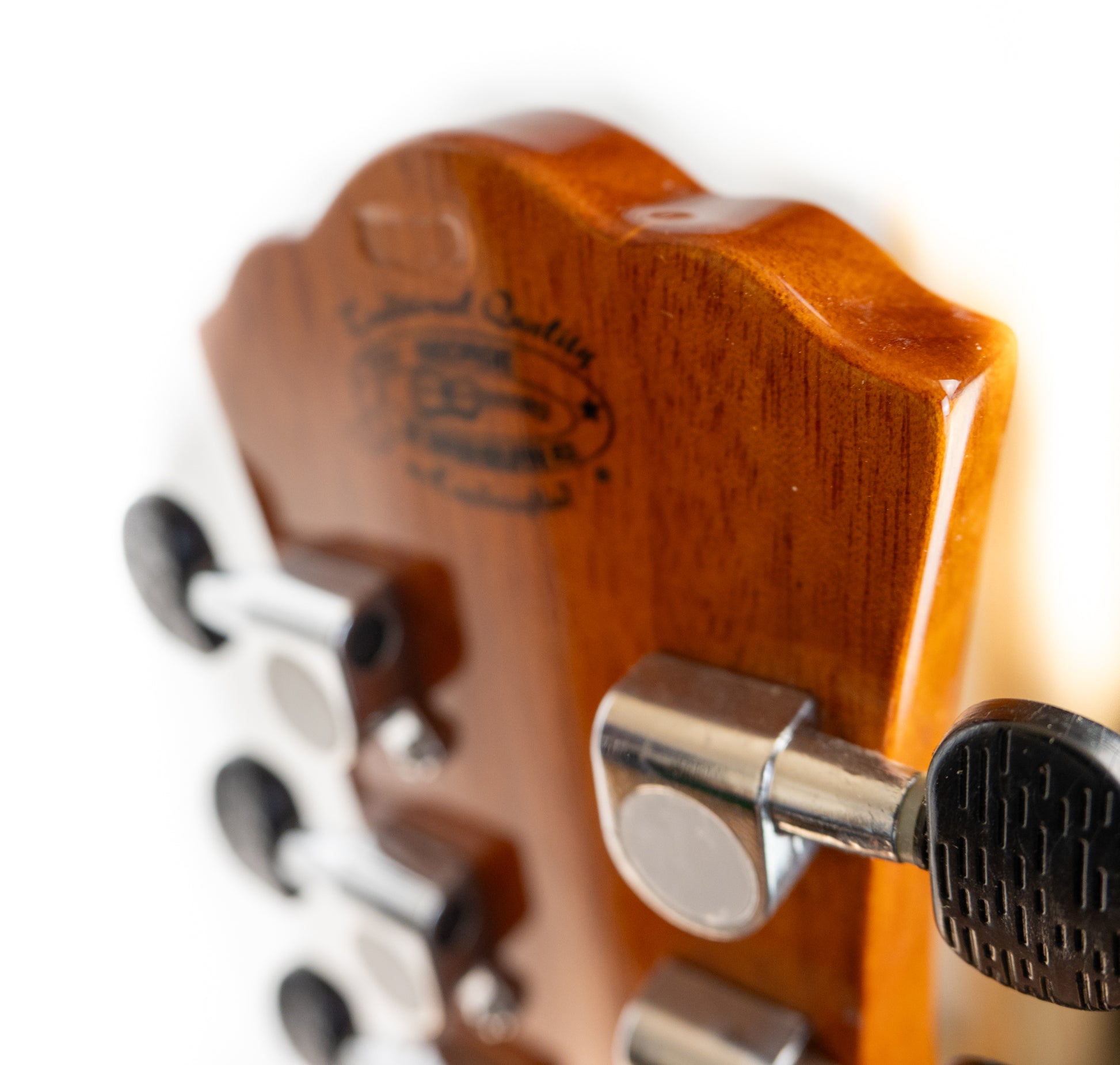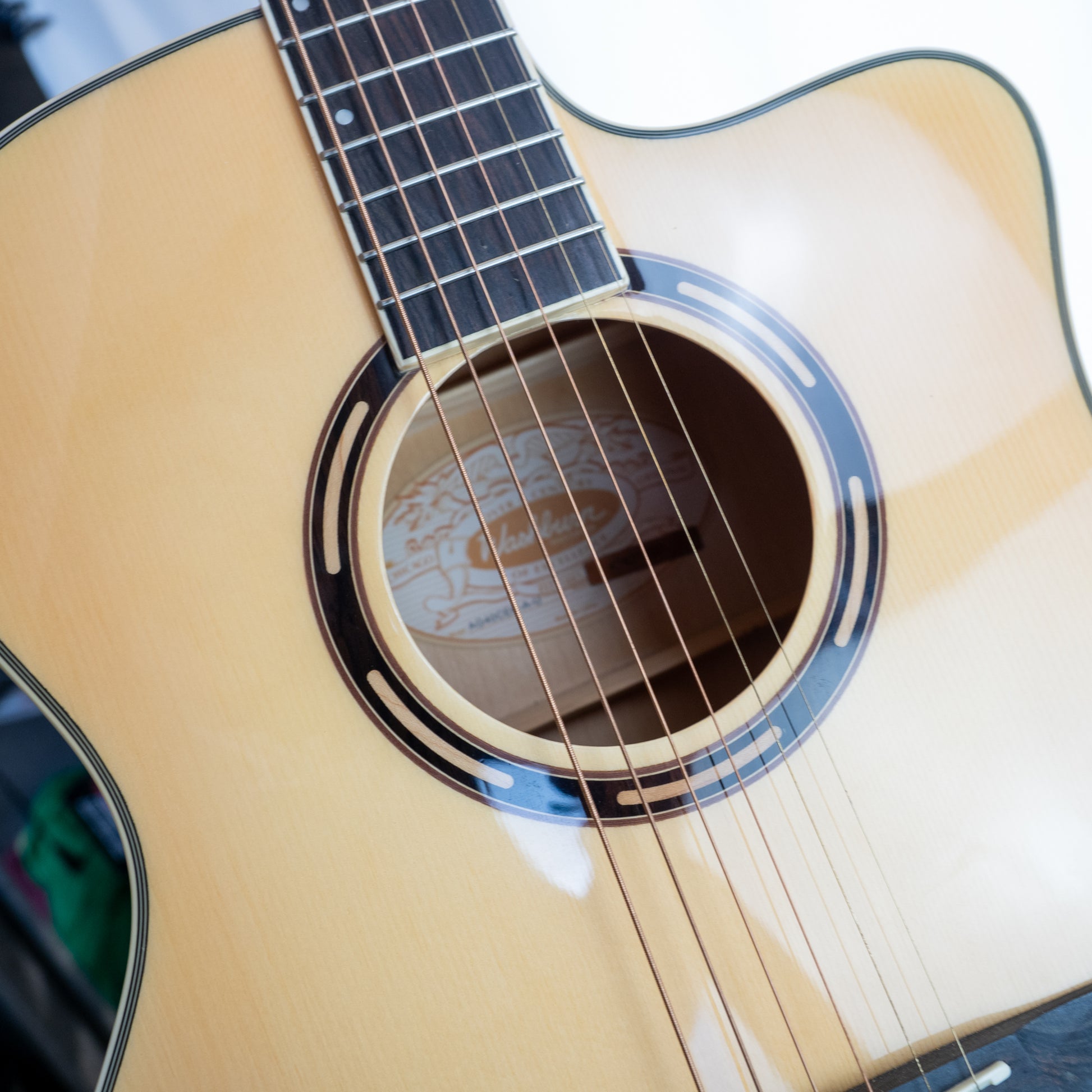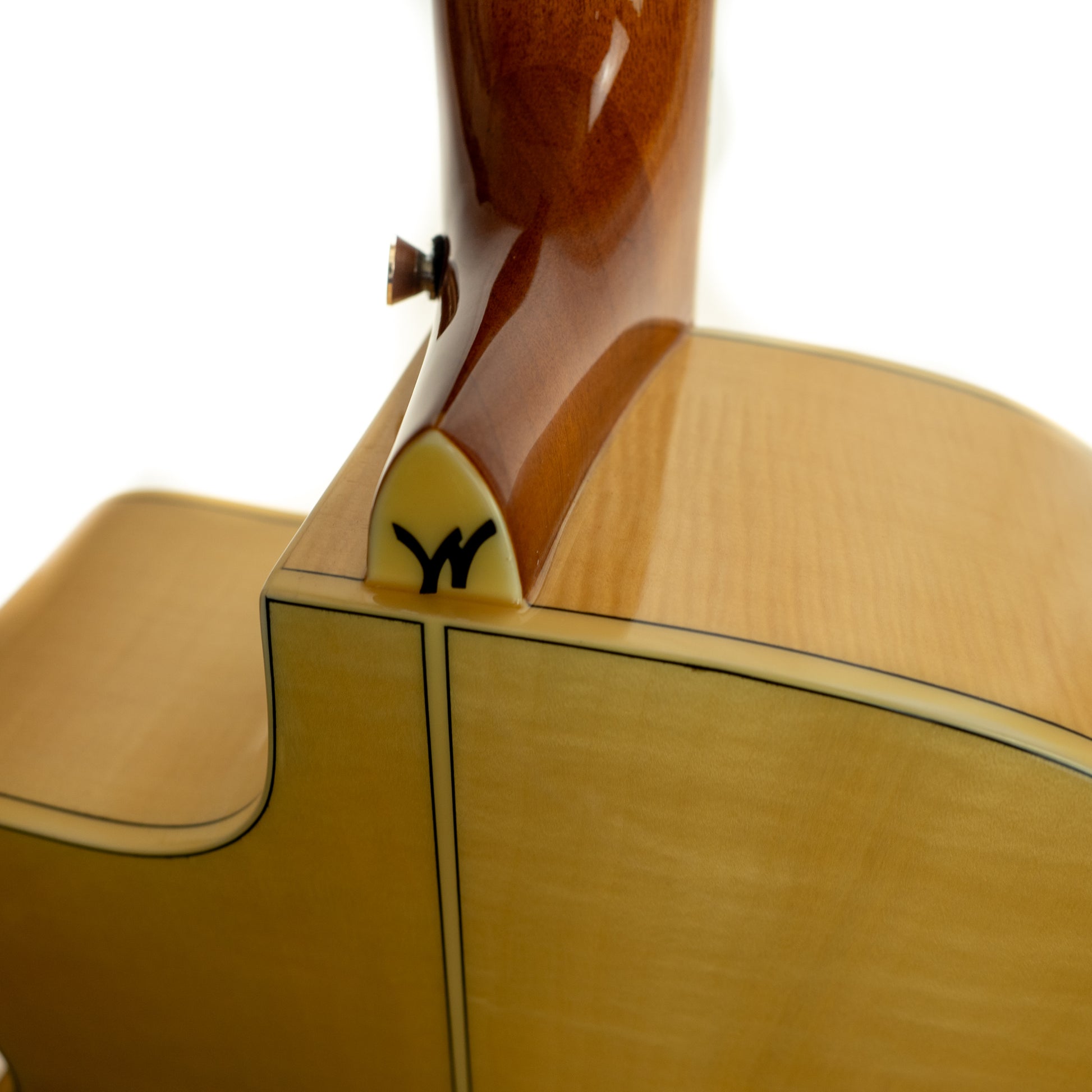 This is a great guitar, it is really lovely in person. It has low action, a great tone and powerful pickup system. It's in near new condition, but as a refurbished b-stock guitar, it has been stamped "USED" on the back of the headstock to indicate that it no longer carries factory warranty.