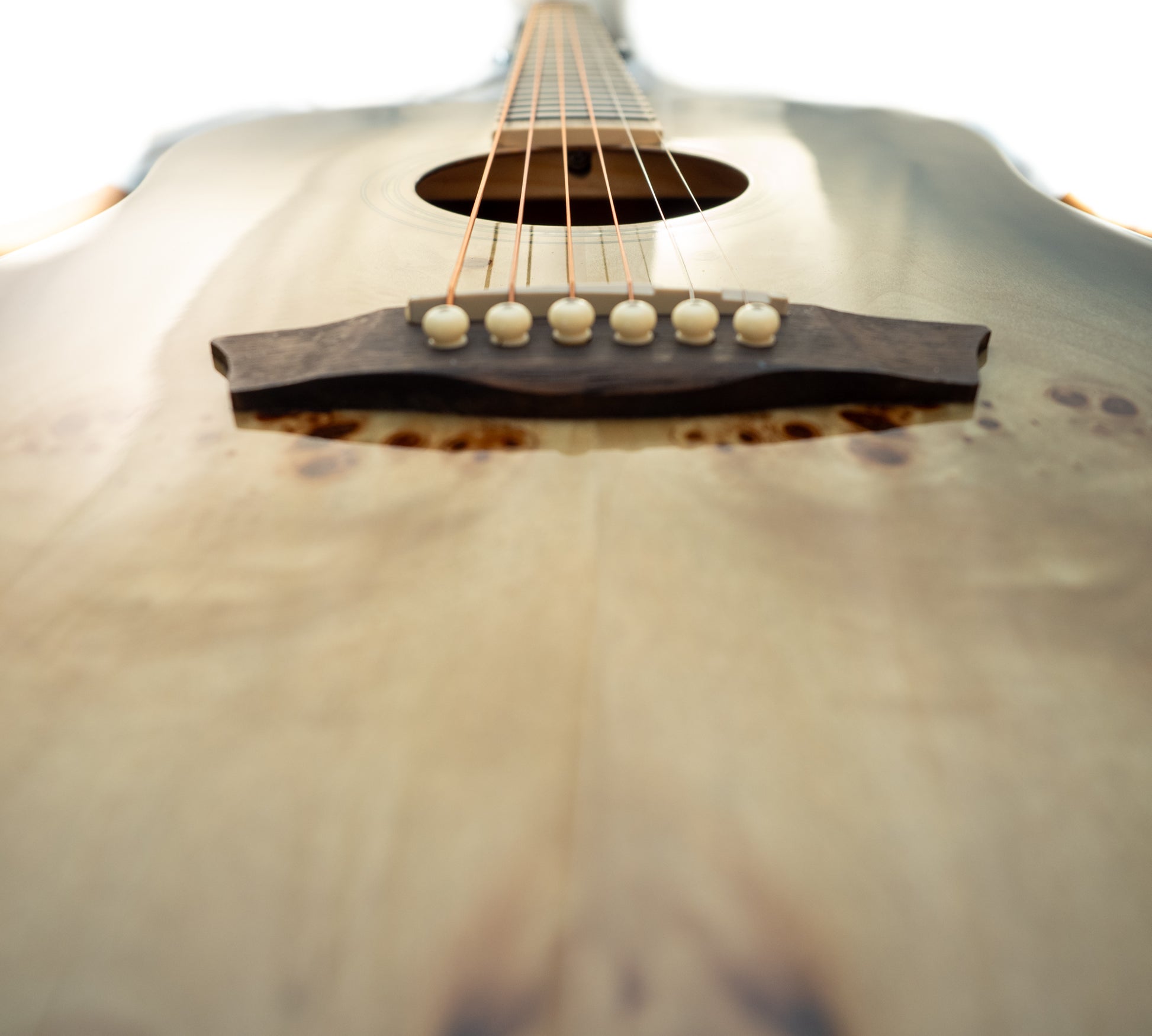Tradition meets exceptional in the Deep Forest Burl D. We started with a traditional dreadnought body shape and the big tone that that produces. Then we added the twist of perfectly finished burl on the top, adding that modern boutique appeal. Looking past the great looks, you will find a guitar that plays great and delivers a versatile tone.