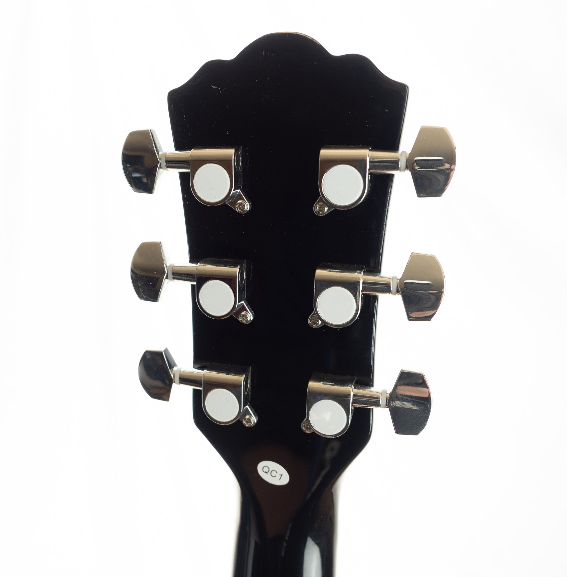 This is a great guitar for the money, it has a straight neck, low action and good tone. The pickup system has strong output. As a refurbished instrument, it is stamped "USED" on the back of the headstock to indicate that it no longer carries factory warranty. It has some finish imperfections that don't show in the photos, some minor blotches and light spots in the finish that can be seen in certain light. It has some visible scratches on the back.