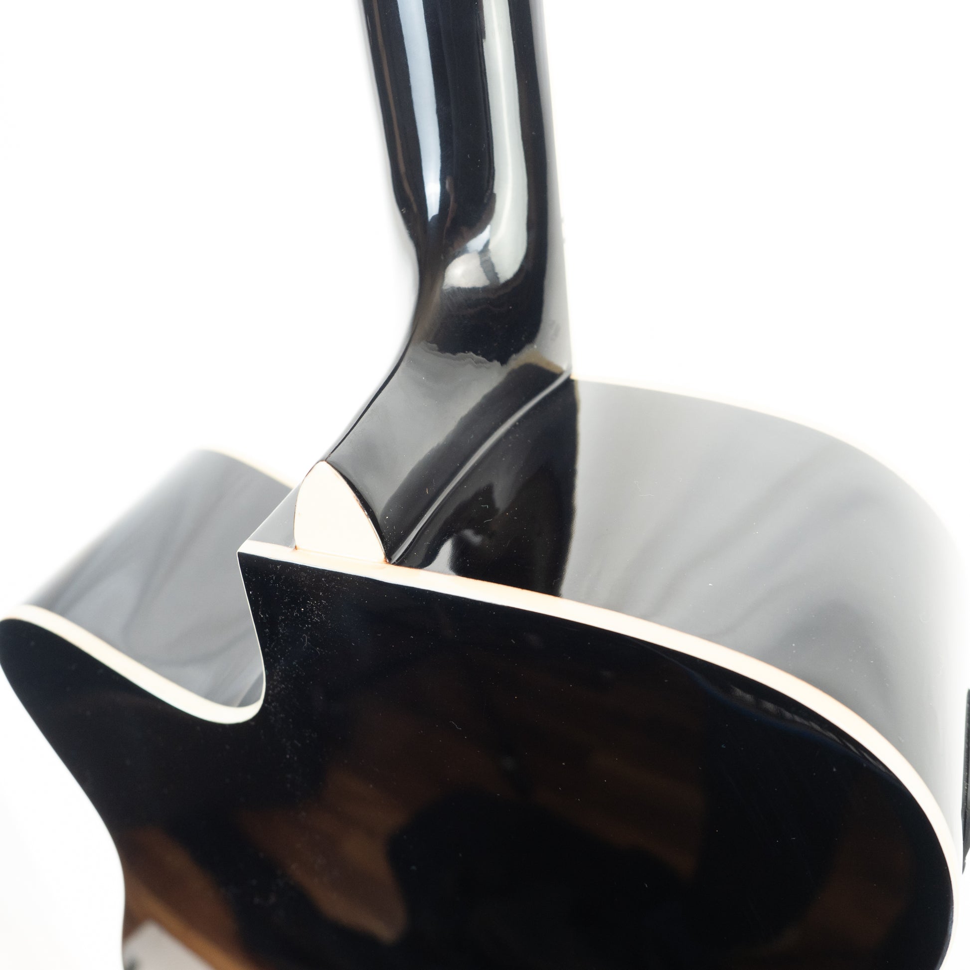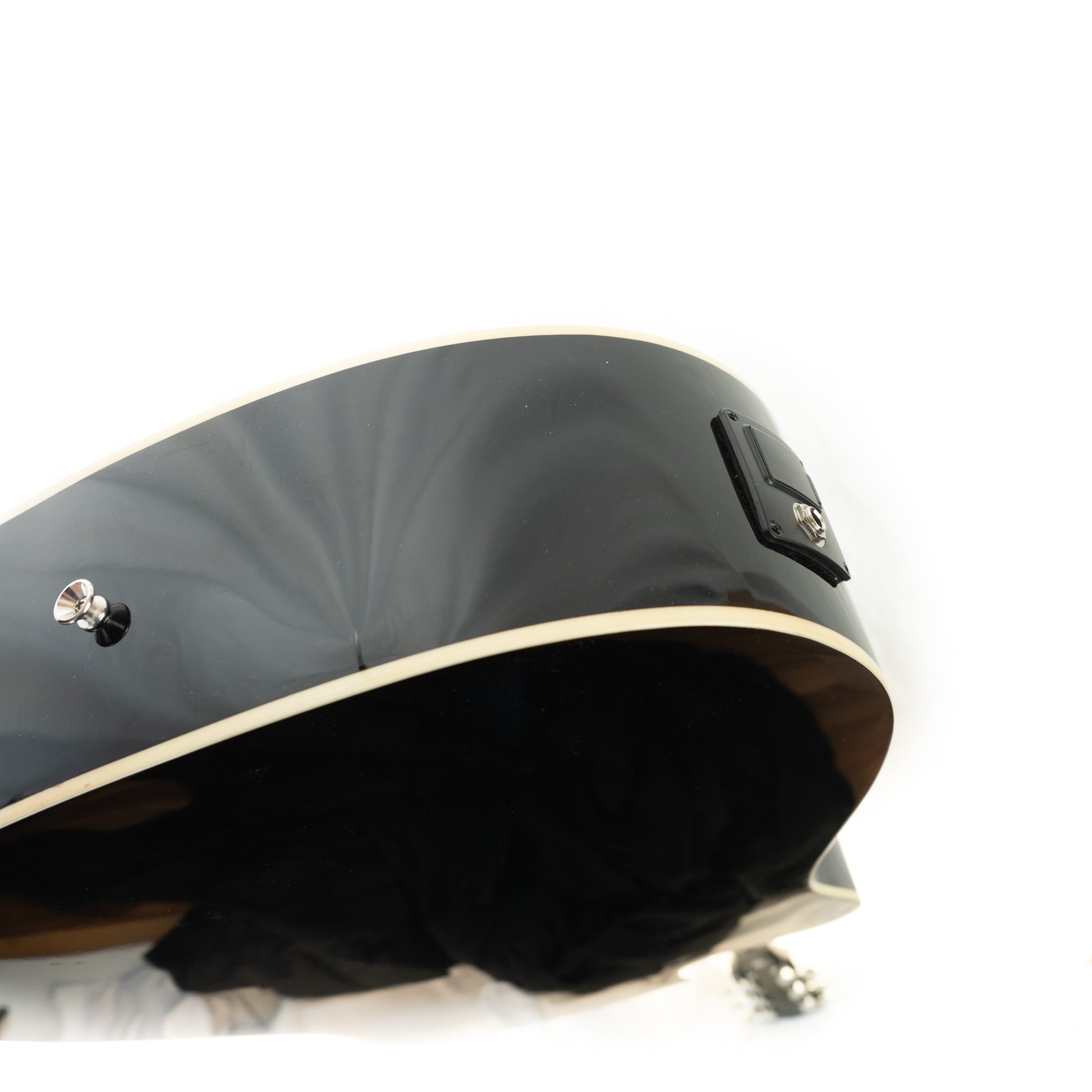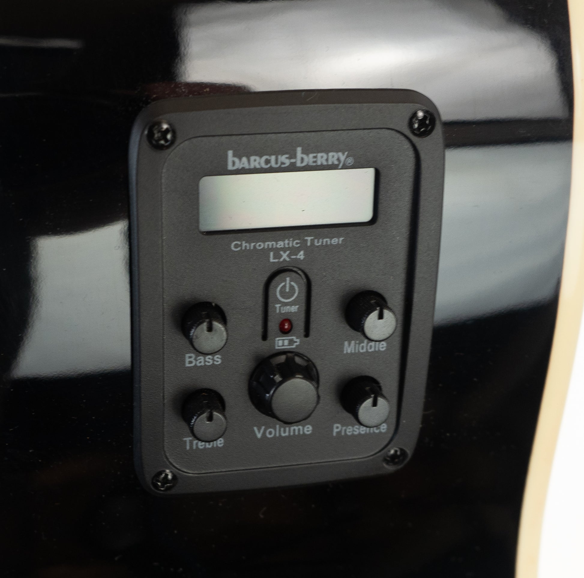 The Washburn WA90CEVSB dreadnought acoustic-electric guitar is a go-to companion for the living room, the campfire or the stage, with a solid balance of stability, tone and aesthetics. The cutaway makes it easy to reach the uppermost frets, and the Barcus Berry LX4 preamp with built-in tuner means you’ll always be ready to plug in, and in perfect tune. It has a linden top, back and sides, paired with an okoume neck and black walnut fingerboard. The WA90CE is ideal for strumming, playing some blues or bluegrass flat picking. Additional appointments include chrome die-cast tuners, a walnut bridge and an ABS saddle and nut. If you’re looking for a guitar that plays great, sounds great and looks great, and will serve you well as you progress on your musical journey, the WA90CE is for you.