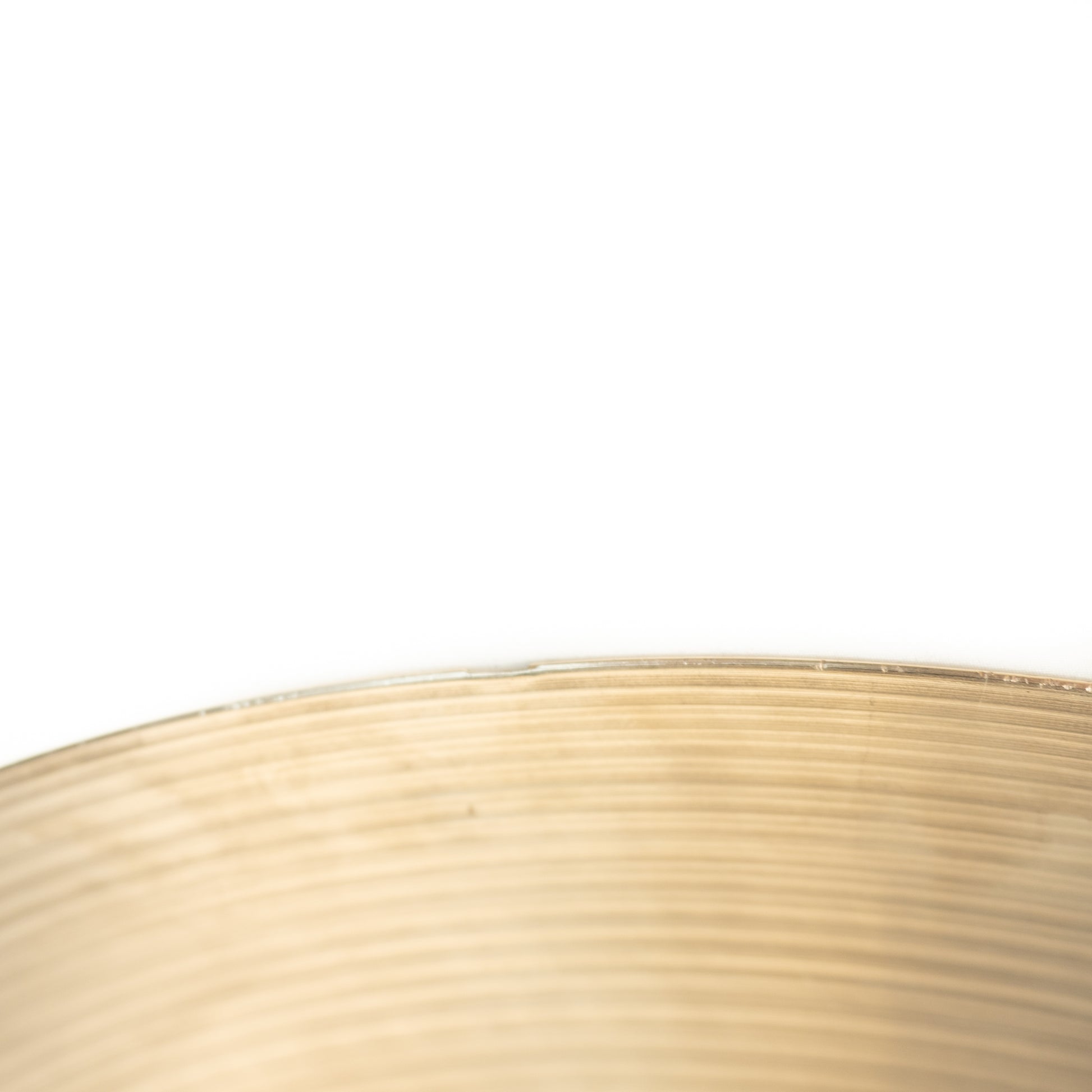 Here is a nice vintage Zildjian ride with a fairly light tone. It has some stick definition, but washes fairly easily. It has some light edge dings and one longer 8x1mm chip. It has some light scratches, but other than the chip, no deep "flea bites". We gave it a couple of passes with light cymbal cleaner, but someone who takes the time with some serious elbow grease can get it closer to new. Please play the video to get an idea of the pitch and wash of this ride.